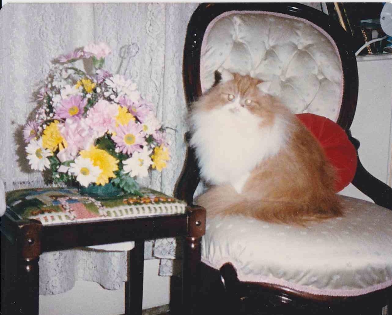 We have a cat named Pussywllow. He is beautiful! Yes, he is. And he is very macho since he looks so lovely and has such a name to overcome. He no longer sleeps through the dinner hour. He comes every evening just before I get up to serve desert and pushes the door open to come into the dinning room. It takes a couple of hearty shoves, but he can push the solid wood door, and chair aside and strut into the room. He swaggers into the room! At 15 pounds he’s no little cat. He is three times Daisy’s diminutive stature. We have opened the door for him only to receive a look of disgust. He wants to prove he can push that door open. Daisy leaves, checks the windows and returns. We still close the door and pull the chair in front to hold it in place.