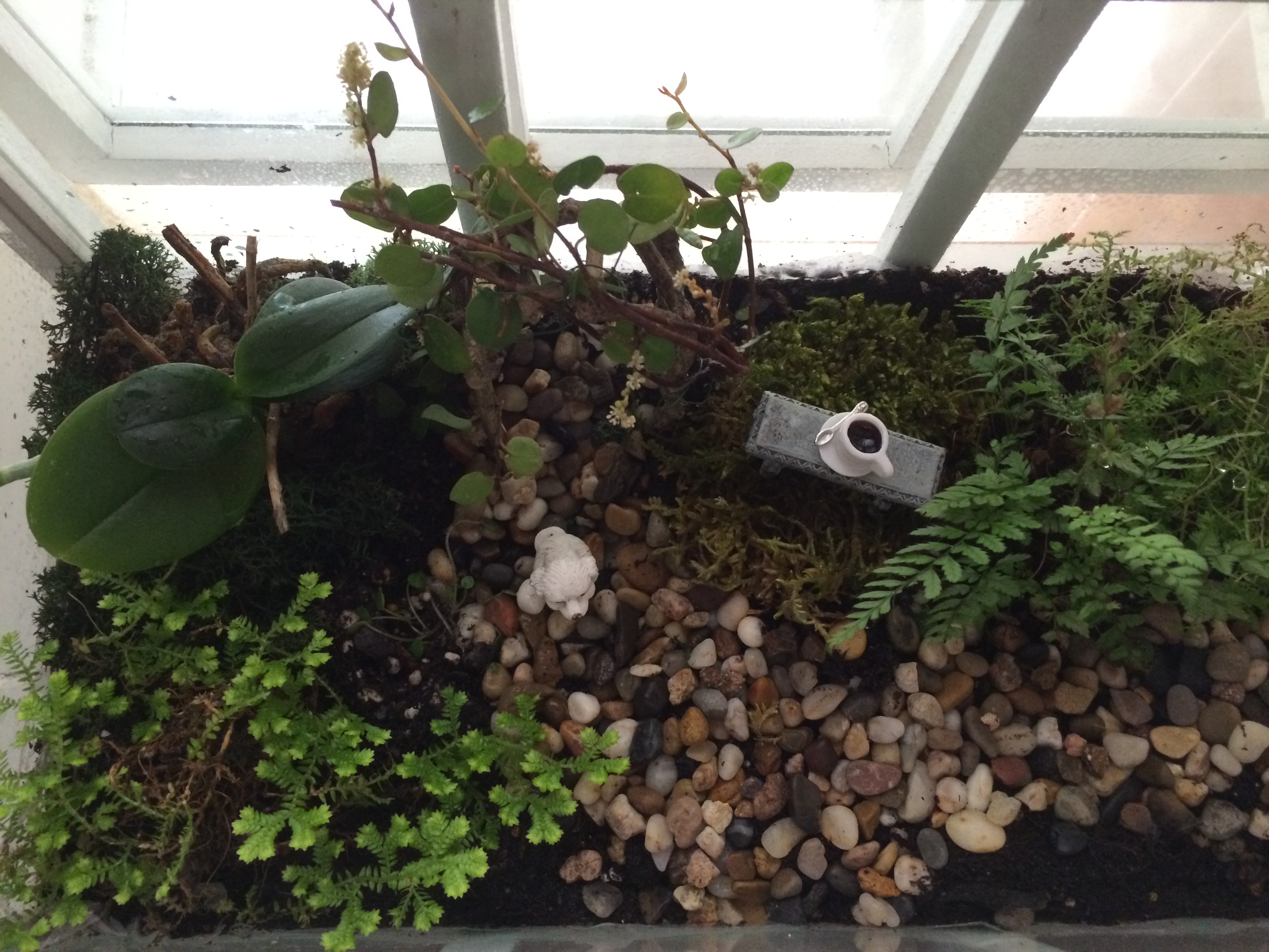 I have a miniature, indoor garden that I planted in a Wardian Case. The garden has a little path, bench and arbor. The entire garden is less than twenty inches long. The gravel in the path is minute. I water the garden by misting it with a plant-sprayer. When the gravel is wet it shimmers. They are beautiful stones, even though they are mere specks.